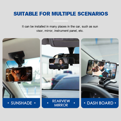 - ?1080 Degrees Rotation car cell phone holder : Our cell phone holder designed with 360 degrees roatatable ball jiont for optimalxiewing angle and 720 degrees adjustable telescopic arm. This carcell phone holder canbe adjusted freely according to the front passenger seat, in oder to make sure driving safety, stability and aviod obsttructing the sight.