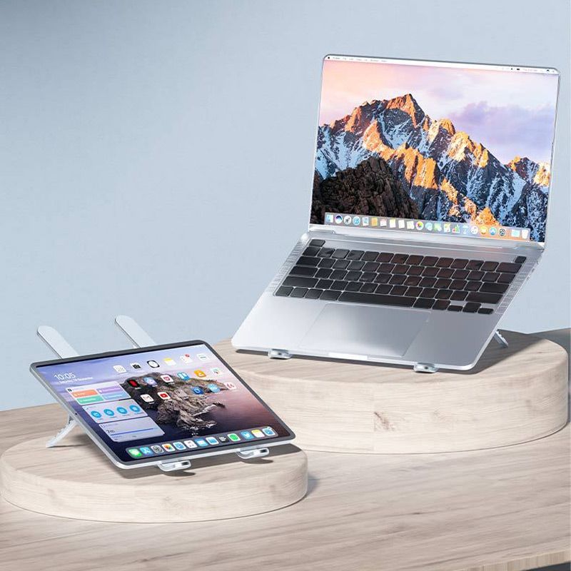Stable support: Made of thickened aluminum alloy material and constructed in a double triangular mechanical structure to achieve strong bearing and stable support without shaking or wobbling. Soft silicone mat effectively prevents slipping and does not scratch the device or desktop.