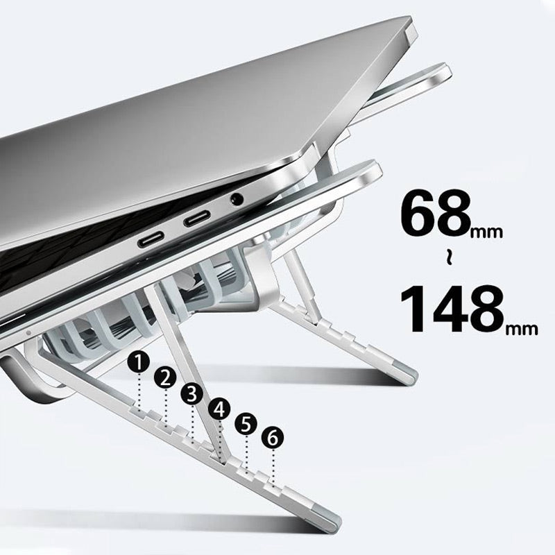 Height Adjustment: The ergonomic 6-gear heights allow you to work in the most comfortable position and relieve cervical pressure. Say goodbye to the bowed hump working, away from fatigue! This feature is also great for those who are constantly on the go and need to be able to adjust their laptop holder to different heights.