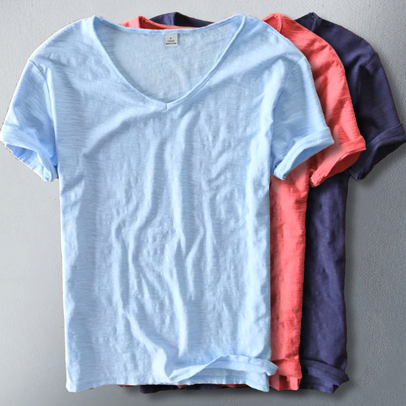 Men Cotton V-Neck Short Sleeve Soft T-Shirts